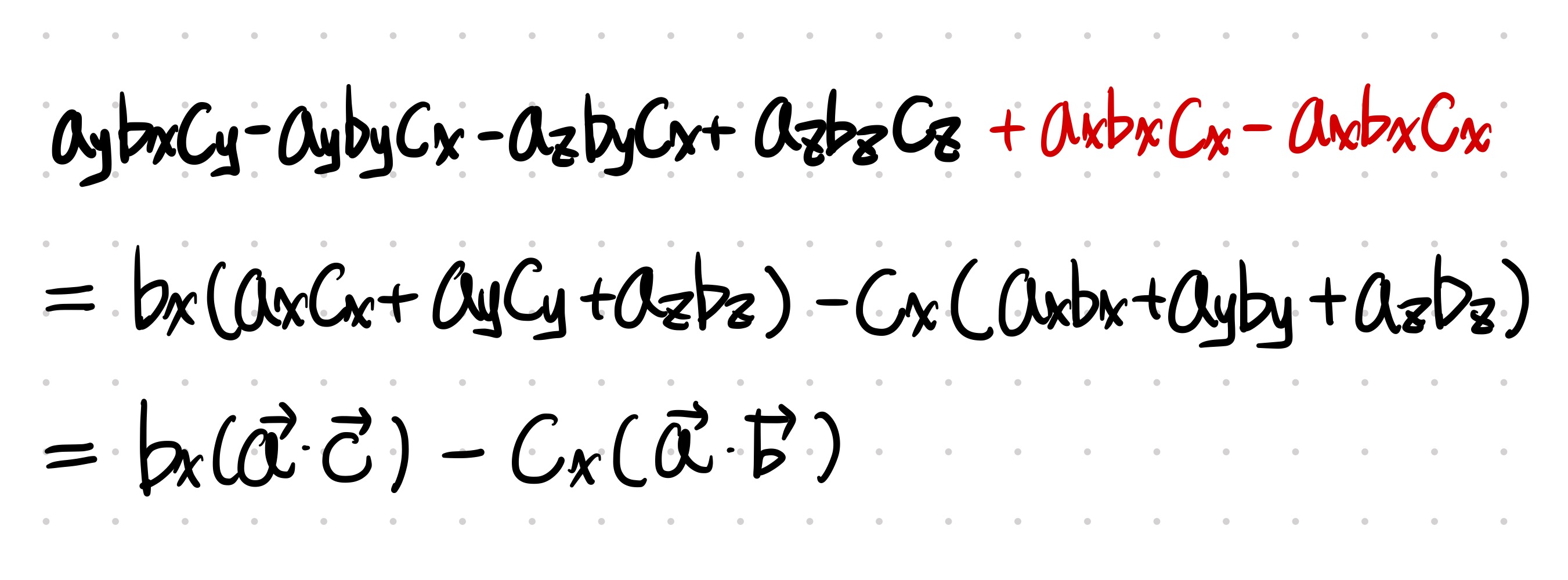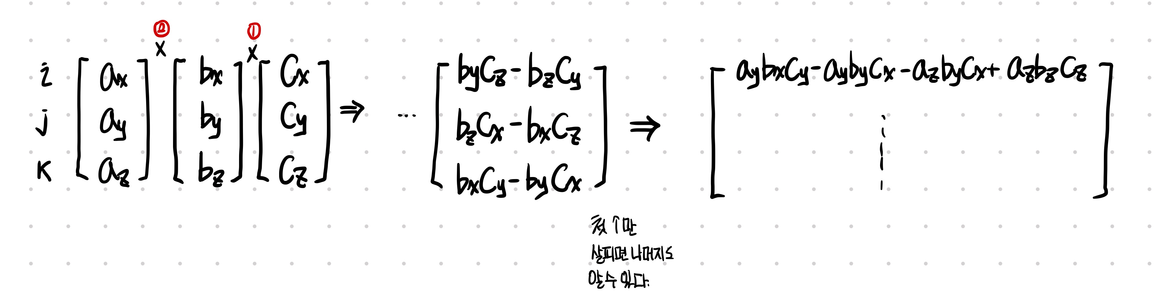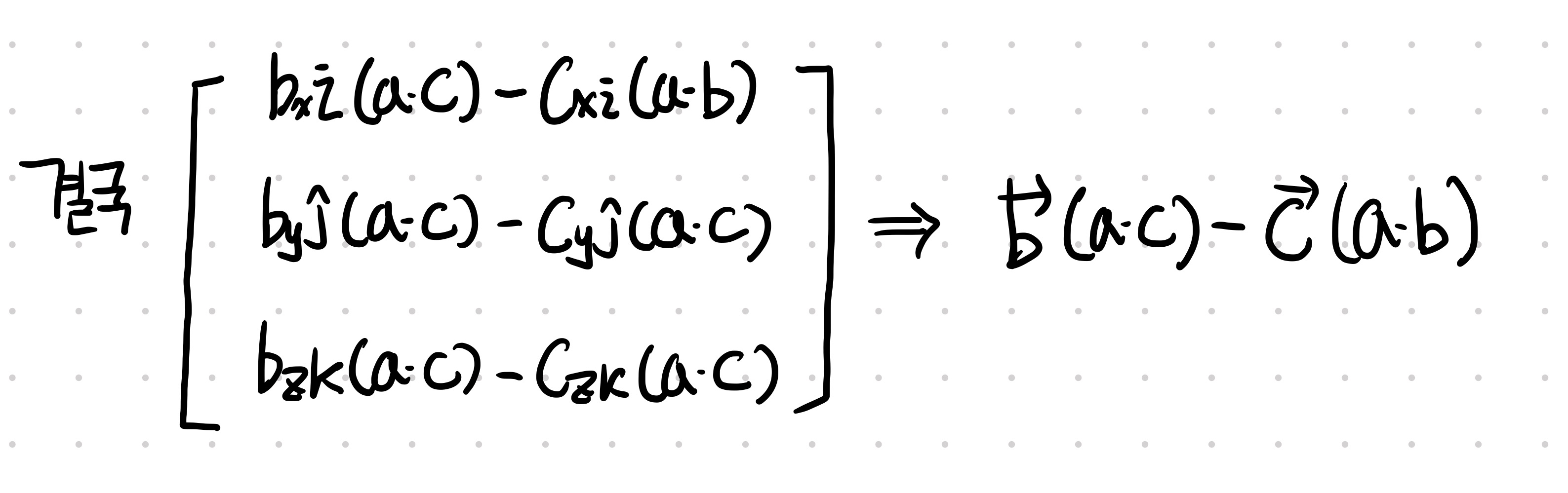 벡터 b와 벡터 c를 먼저 외적 한 후, 벡터 a를 그 위에 외적 한다.