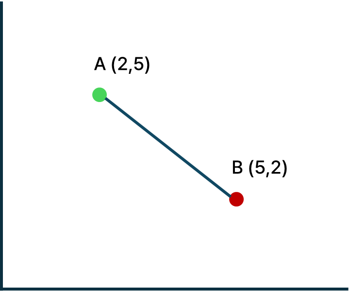 A์ B์ ๊ฑฐ๋ฆฌ๋ \[\sqrt{(5-2)^2+(2-5)^2}=3\sqrt{2}\]
