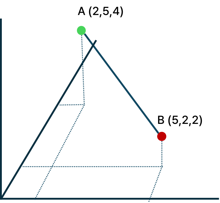 ์ด๋ ๊ฒ ๋๋ฉด A, B ์ฌ์ด์ ๊ฑฐ๋ฆฌ๋ \[\sqrt{3^{2}+3^{2}+(4-2)^2}=\sqrt{22}\]