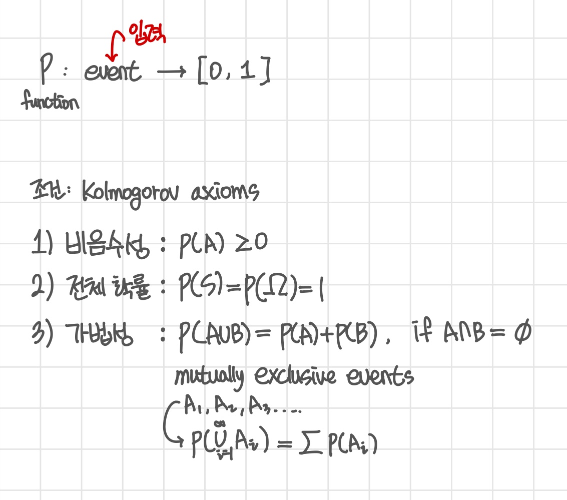 확률은 Kolmogorov axioms 조건(3가지)을 따른다.