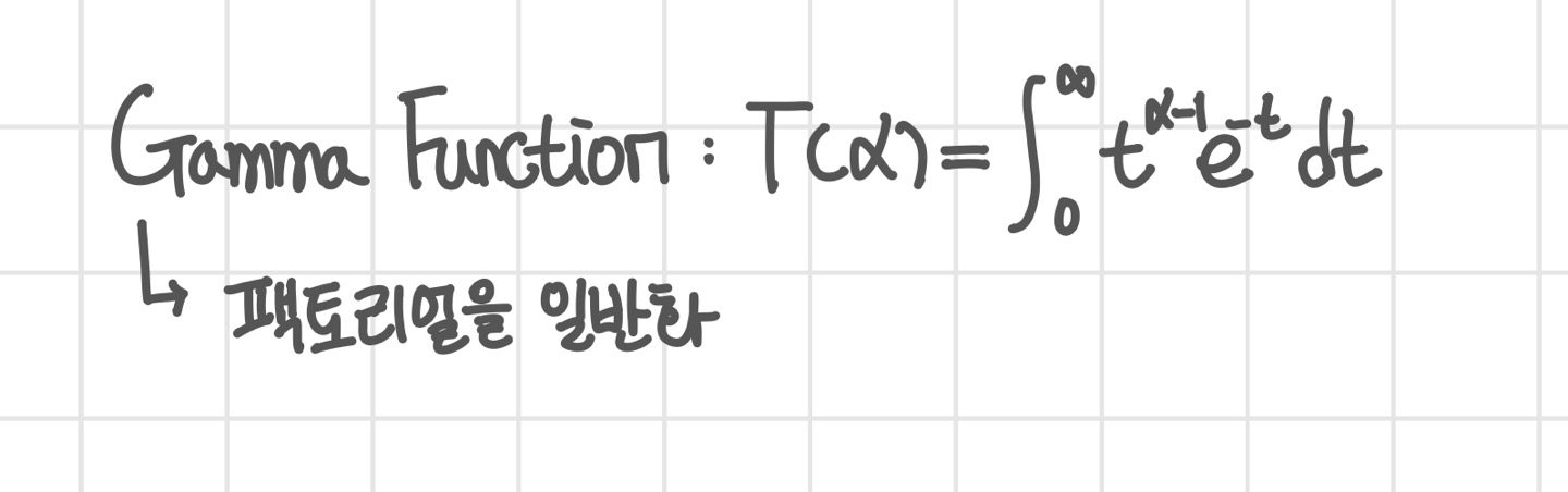 복소수 범위에서도 팩토리얼을 나타낼 수 있게 일반화한 것이 Gamma Function이다.