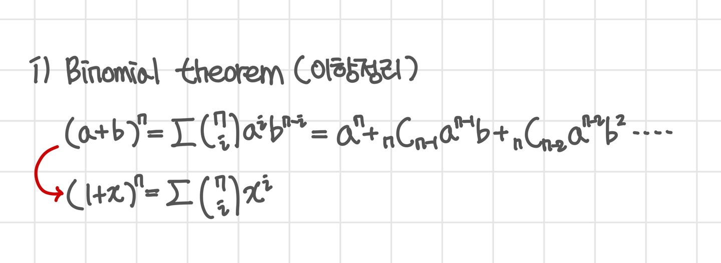 여기서 조합은 각 차수들의 계수들을 구할 때 쓰인다. 중요점은 조합을 표현할 때 어떻게 표현하는지이다.