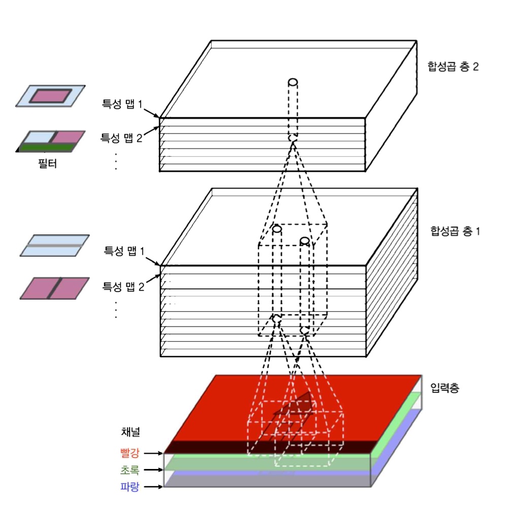 ์์ ์ธ๊ธํ๋ฏ์ด, ์ฒซ ๋ฒ์งธ ํฉ์ฑ๊ณฑ ์ธต์ ๋ด๋ฐ์ ์ด๋ฏธ์ง ์ ์ฒด ํฝ์ ๊ณผ ์ฐ๊ฒฐ๋๋ ๊ฒ์ด ์๋๋ค. ํ ๊ฐ์ ๋ด๋ฐ์ด ์์ฉํ๋ ๋ฒ์์ ์๋ ํฝ์ ๋ง ์ฐ๊ฒฐ๋์ด ์ ๋ ฅ๊ฐ์ผ๋ก ๋ค์ด๊ฐ๋ค.