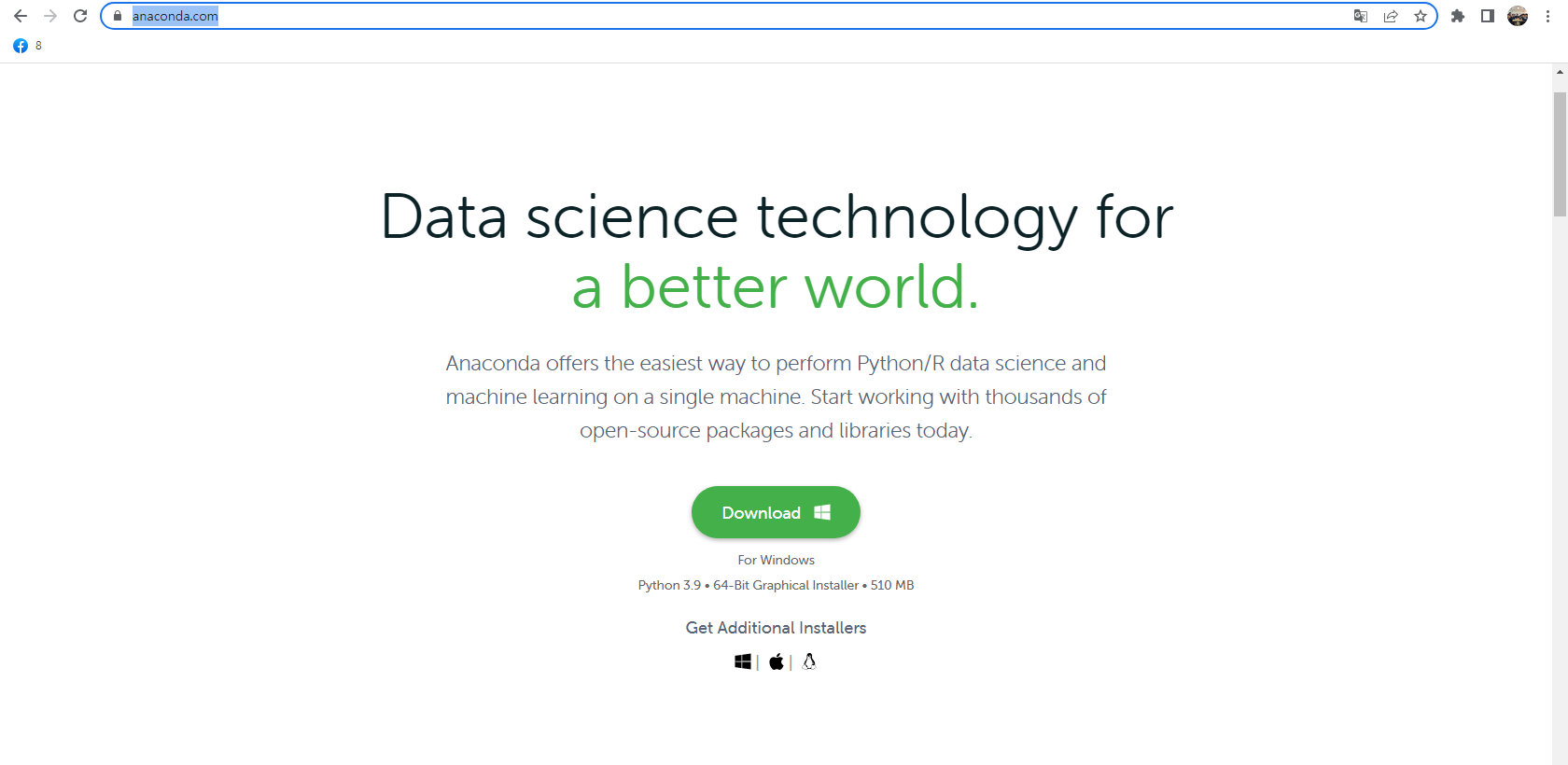 ๋จผ์ https://www.anaconda.com/ ๋งํฌ์ ์ ์ํ๋ค.