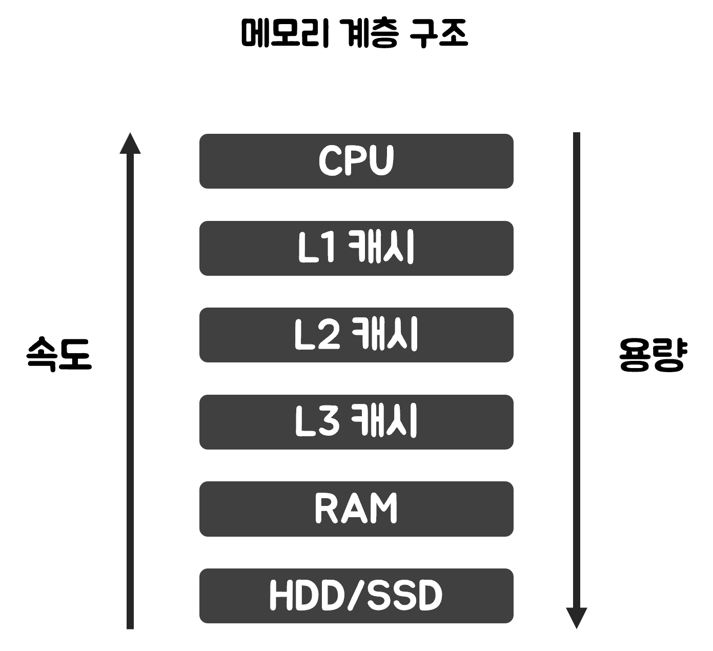 ์ปดํจํฐ๊ฐ ์ฐ์ฐ์ ์์ํ๋ฉด ํ๋๋์คํฌ์์ CPU๊น์ง ๋ฐ์ดํฐ๊ฐ ์๋ก ์ด๋ํ๋ค. ์ฐ์ฐ์ ์์ฃผ ์ฐ์ด๋ ๋ฐ์ดํฐ๋ ์๋ก ๋ฐฐ์น๋๊ณ ์ฐ์ฐ์ ์์ฃผ ์ฐ์ด์ง ์๋ ๋ฐ์ดํฐ๋ ์๋๋ก ๋ฐฐ์น๋๋ค. ์๋๋ HDD, ์ฆ ๋์คํฌ ์์ญ์์ ์ ์ผ ๋๋ฆฌ๊ณ , CPU๋ก ์ฌ๋ผ๊ฐ ์๋ก ๋นจ๋ผ์ง๋ค. CPU์์ ์ ์ผ ๋น ๋ฅด๋๊น ๋ฐ์ดํฐ๋ฅผ ๋ชจ๋ CPU์์ ์ฒ๋ฆฌํ๋ฉด ๋์ง ์์๊น? ๋ผ๋ ์๋ฌธ์ด ๋ค ์ ์๋ค. ํ์ง๋ง ๊ณ์ธต ์๋ก ์ฌ๋ผ๊ฐ์๋ก ์ฒ๋ฆฌ ๊ฐ๋ฅํ ์๋์ ์ฉ๋์ด ๋ฐ๋น๋กํ๋ค. ๋ฐ๋ผ์ ์ฉ๋์ด ํฐ ๋ฐ์ดํฐ๋ฅผ ๋น ๋ฅด๊ฒ ์ฒ๋ฆฌํ๋ ๊ฒ์ ์ด๋ ค์ ๋ณด์๋ค.