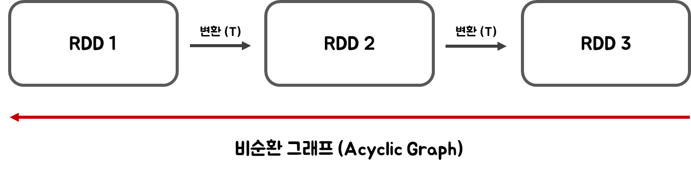 RDD๋ ๋ณํ์ ํด๋ RDD 1์ด ๋ฐ๋๋ ๊ฒ์ด ์๋๋ผ RDD 2๊ฐ ์๋ก ๋ง๋ค์ด์ง๋ค. ๋ณํ์ ๊ฑฐ์น ๋๋ง๋ค ์ฐ์ฐ ๊ธฐ๋ก์ด ๋จ์ผ๋ฉฐ ์ด์ ๋ฐ๋ผ ๋ฌธ์ ๊ฐ ์๊ฒจ๋ ์ฝ๊ฒ ์ RDD๋ก ๋์๊ฐ ์ ์๋ค.