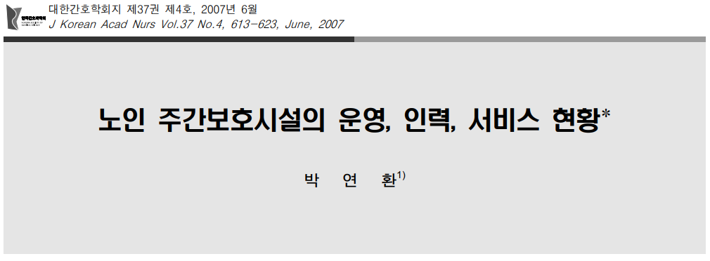 6. ๋ ผ๋ฌธ '๋ ธ์ธ ์ฃผ๊ฐ๋ณดํธ์์ค์ ์ด์, ์ธ๋ ฅ, ์๋น์ค ํํฉ, ๋ฐ์ฐํ, 2007'