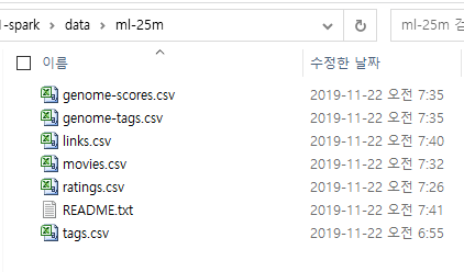(3) C:\์ํ๋ ์ ์ฅ ๊ฒฝ๋ก\ml-25m ์์ ์ด ์ํ๋ ๊ฒฝ๋ก์ ํด๋๋ฅผ ์ ์ฅํฉ๋๋ค.