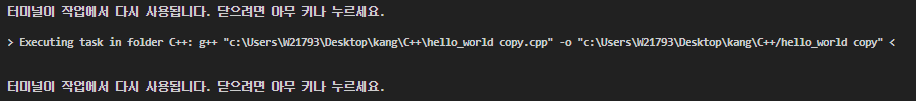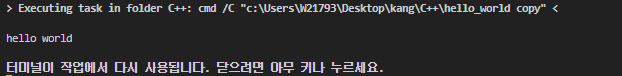 -> execute C++ 클릭해주면, exe 파일이 실행되면서 결과물을 보여줍니다.