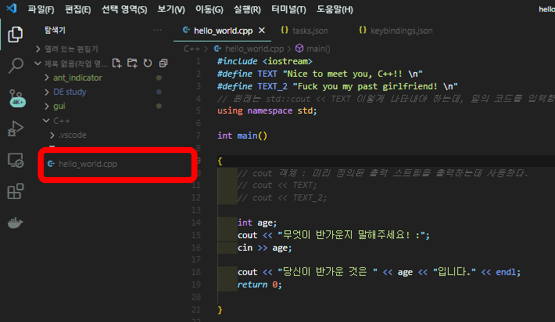 확장자를. cpp로 파일 하나를 만들어줍니다.