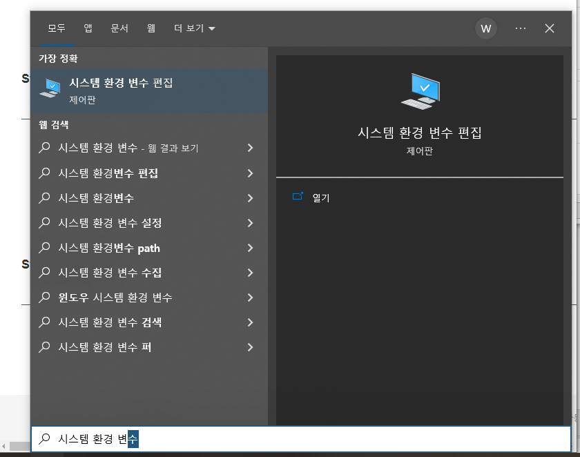 [시스템 환경 변수 편집] - [고급] - [환경 변수] 로 들어가 줍니다.