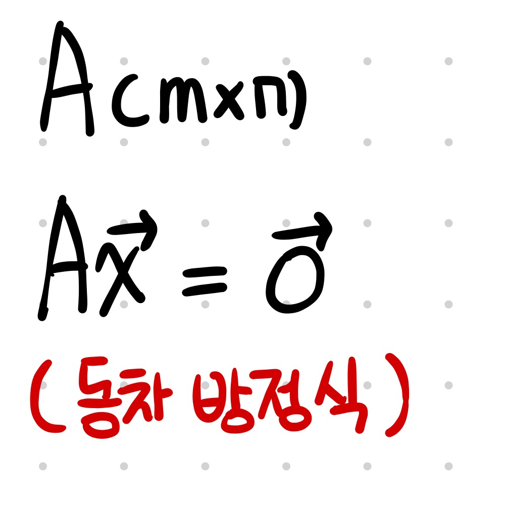 행렬 A와 벡터 x를 곱하면 영벡터가 된다는 방정식입니다.