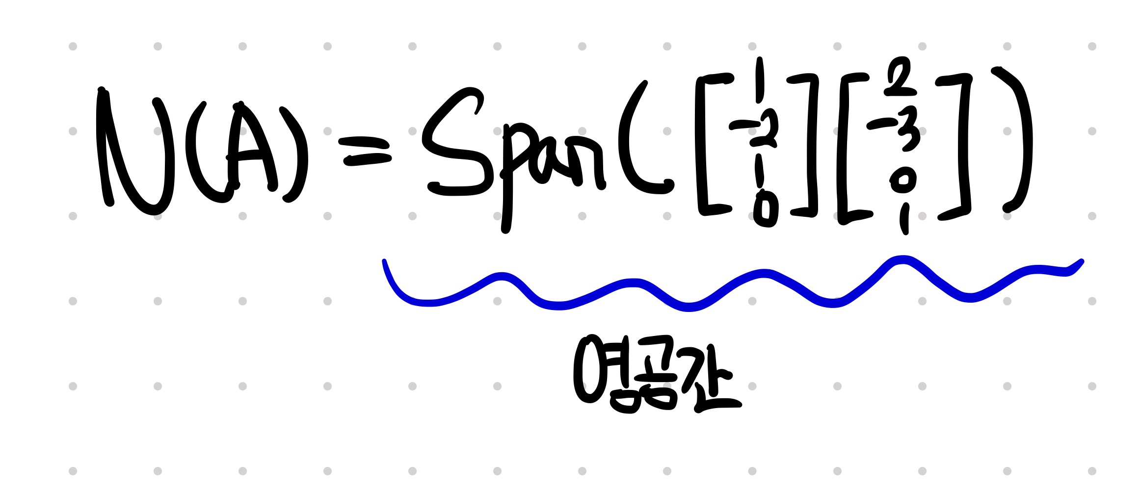 위의 수식이 최종 행렬 A의 영공간이 되겠습니다.