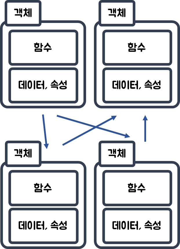 ๊ทธ๋์ ๋ฑ์ฅํ ๊ฒ์ด ๊ฐ์ฒด ์งํฅ ํ๋ก๊ทธ๋๋ฐ์ ๋๋ค.